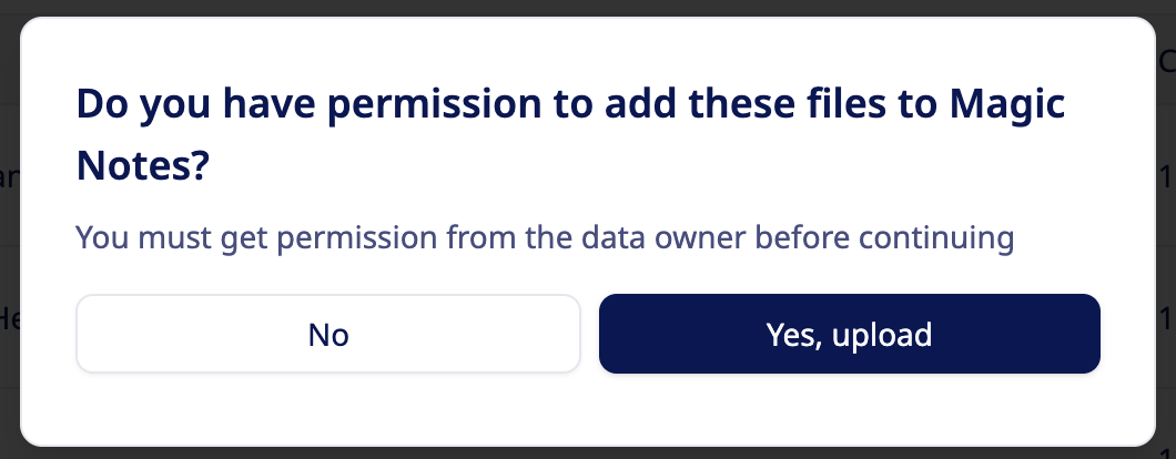 Magic Notes will prompt you at this point to confirm you have the consent of everyone who is recorded in the audio file to upload it into Magic Notes.