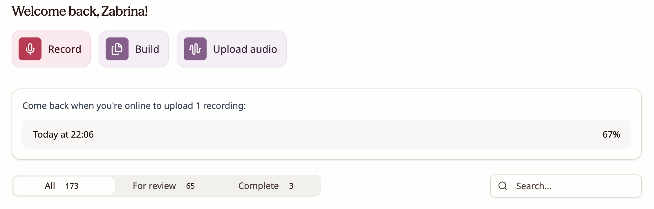 - When you stop the recording, it will be safely stored in a 'Pending' tab on your Beam Notes homepage.