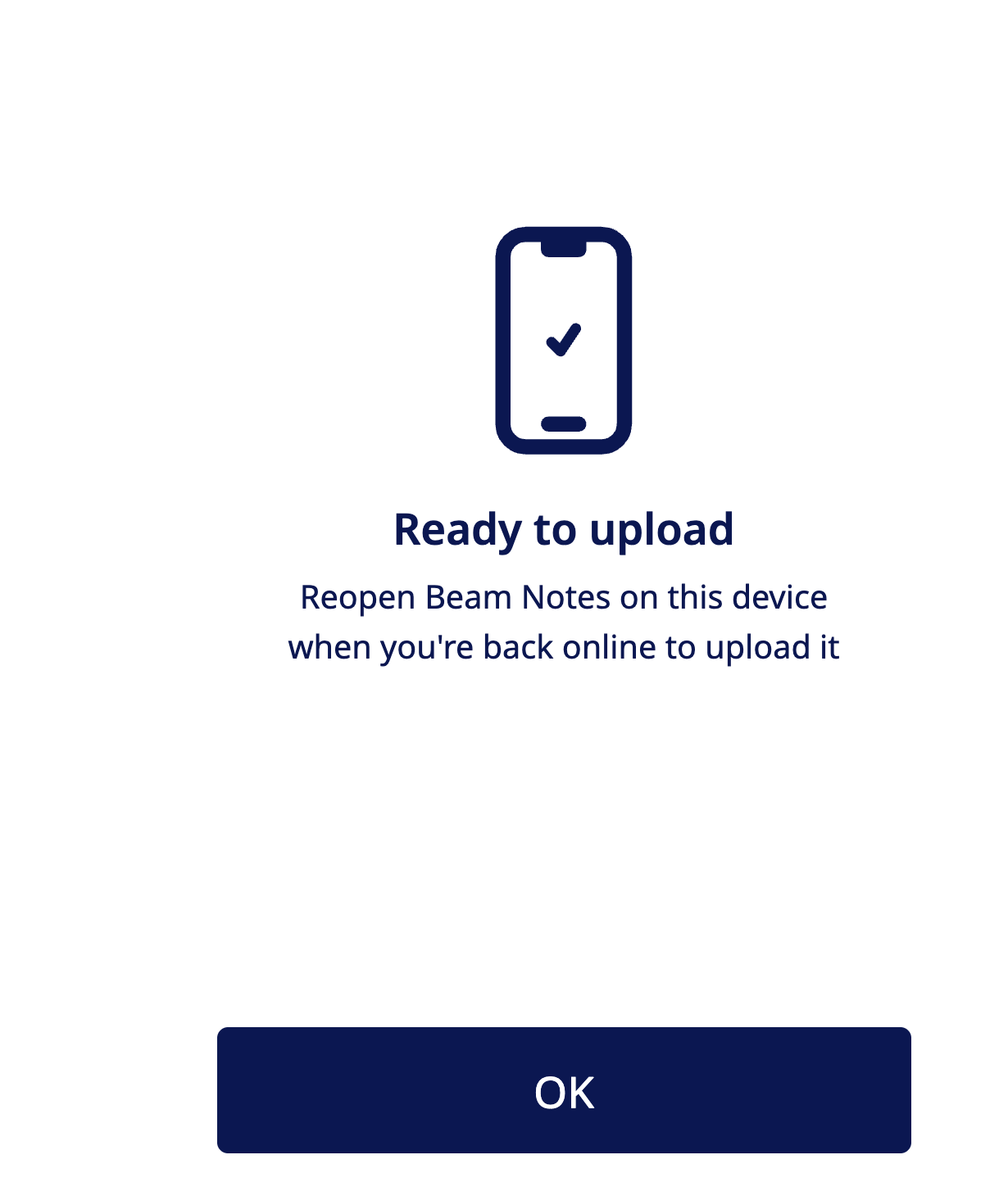 - Beam Notes will begin uploading your pending recording. Leave the tab open until the upload is complete.