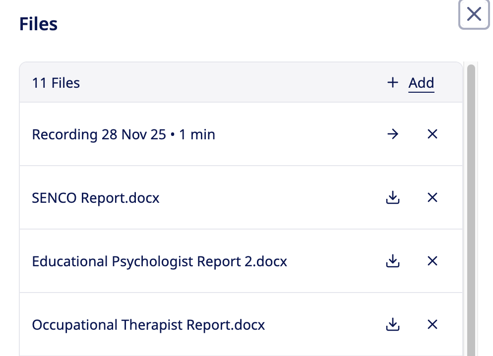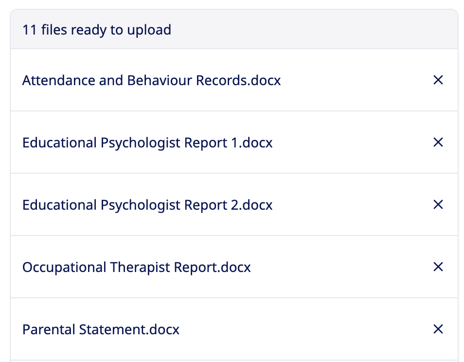 If you wish to add more files you can select the the type of file as described above and add more; or alternatively you can click the X next to any file to remove it from the Report.