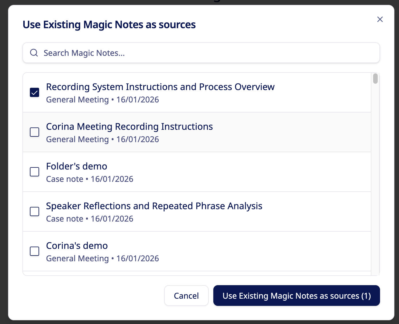 You can also select existing Magic Notes to be included in the Report using the selector on the other side of the screen.