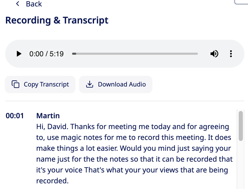 If you already have recordings in Magic Notes which you wish to include in a report, you can download the audio file from the Magic Notes summary.