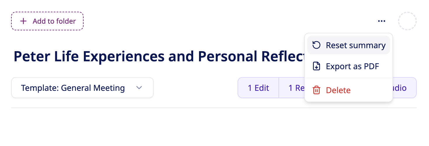 If you want to remove all the changes and reset your summary, you can do this by clicking on the top right three dots and clicking reset summary.