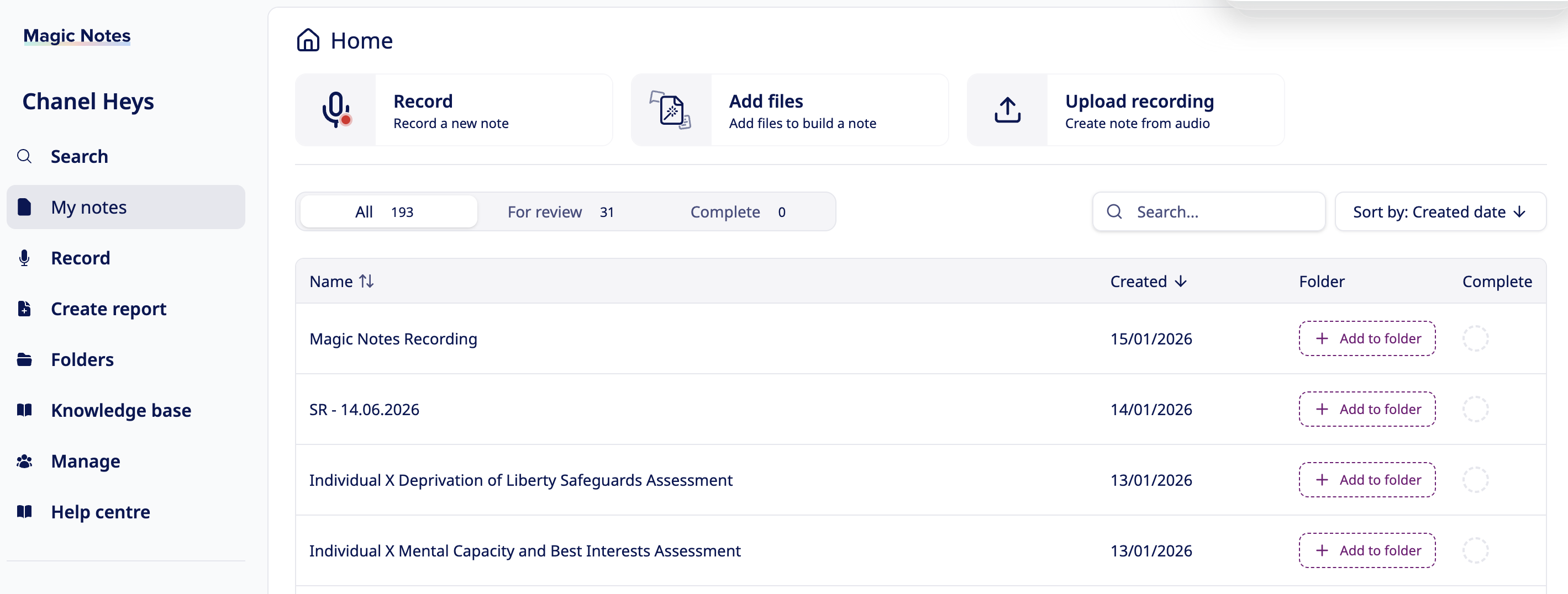 Navigate to a Magic Note by clicking My Notes on the left hand side. Select the note that you want to edit.