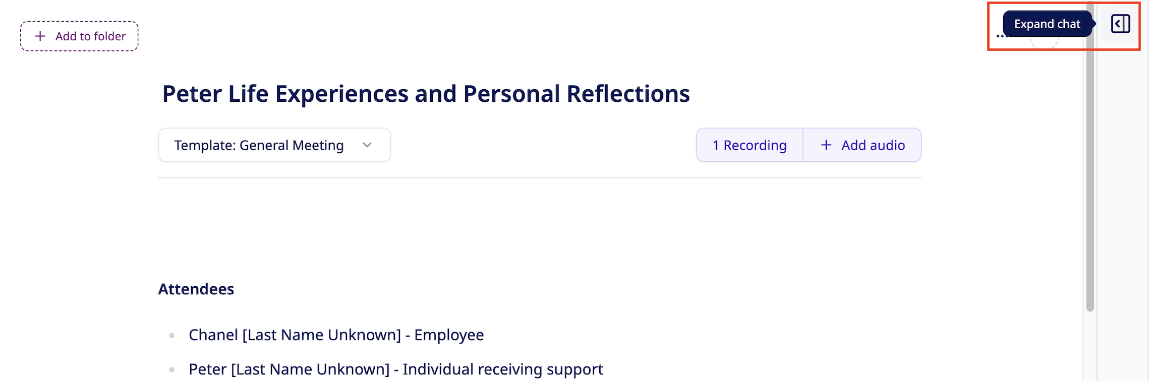 - You can expand or shrink the chat by dragging the line that separates the chat and summary to the left and right.