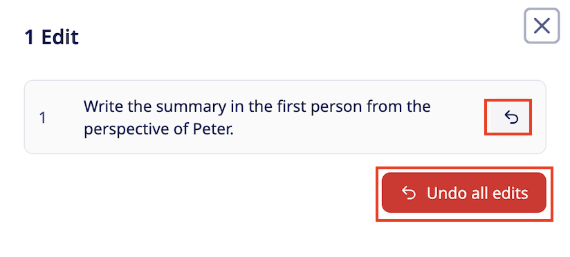 You can always revert any changes that you made. Click on ‘Edit’ and remove the changes. We'd recommend undoing any changes you don't like, before trying a new prompt!
