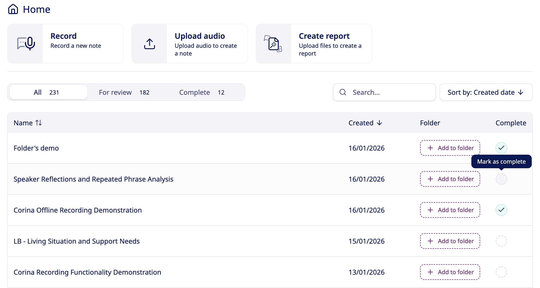 You are now able to quickly filter to view all your notes, notes which are ready for your review, and notes which are complete.