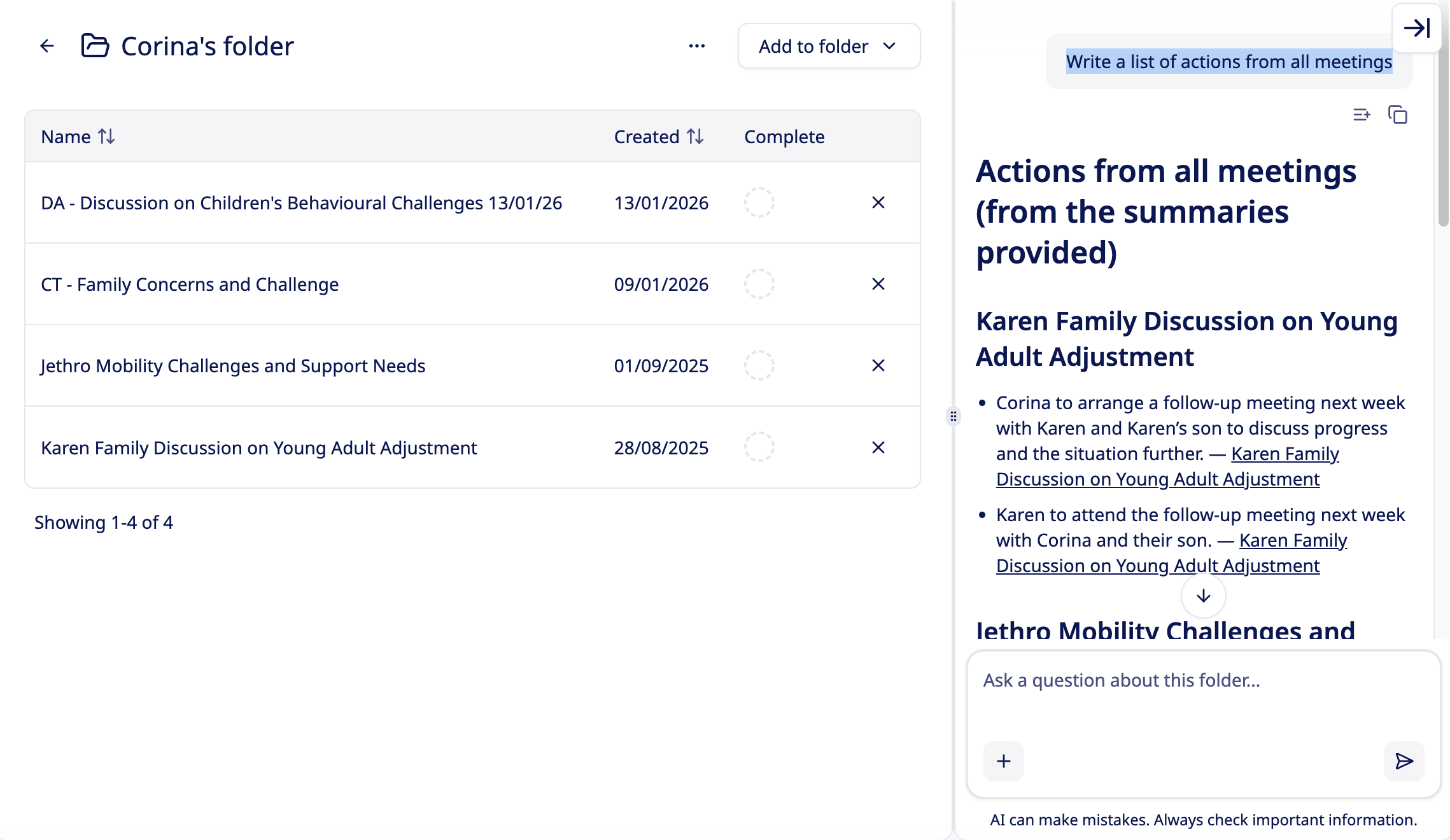Get instant answers – our AI pulls key information from across all the notes in that folder.