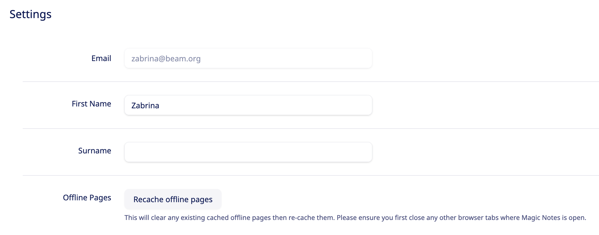 If you are trying to use Magic Notes offline and the page is not loading, you may need to recache your offline content.
