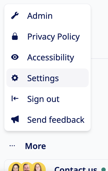 (This is directly above the Contact Us tabClick Settings
