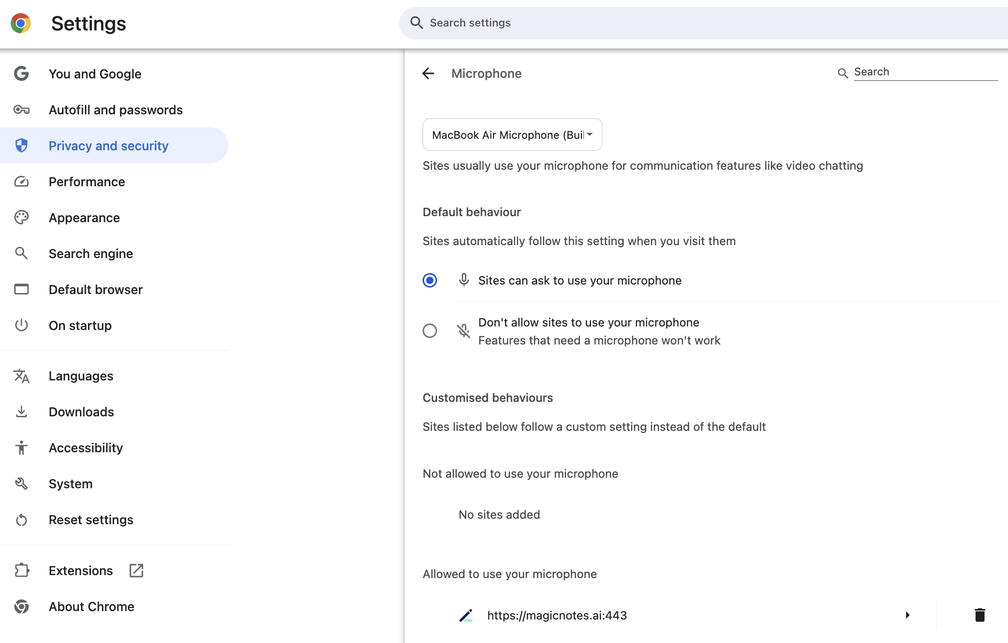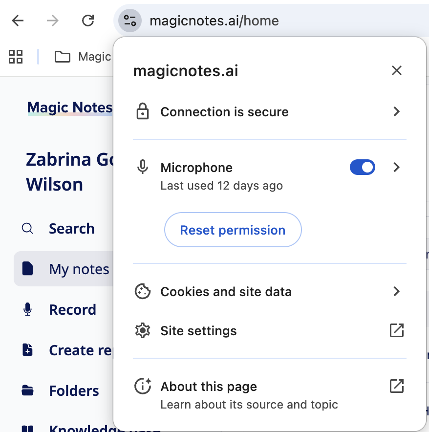 This guide is designed to support you if you are unable to use Magic Notes due to microphone permission issues, most commonly when an error message is displayed on your screen.